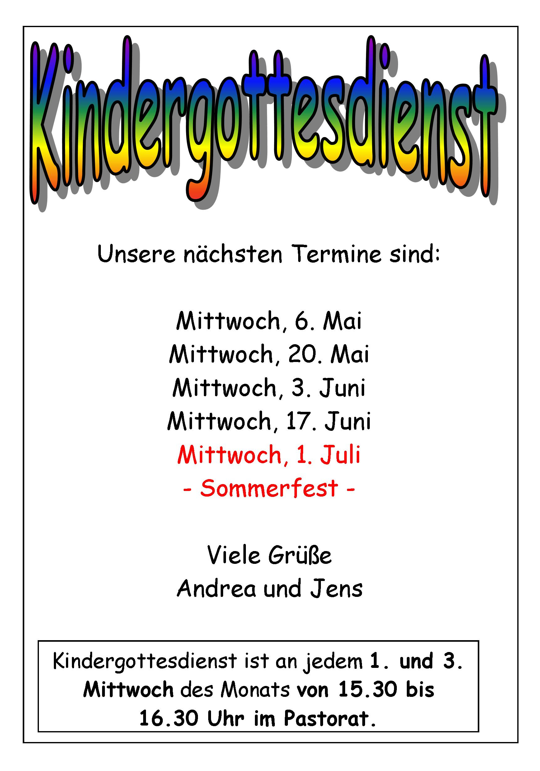 Kindergottesdienst: Immer am 1. und 3. Mittwoch eines Monats